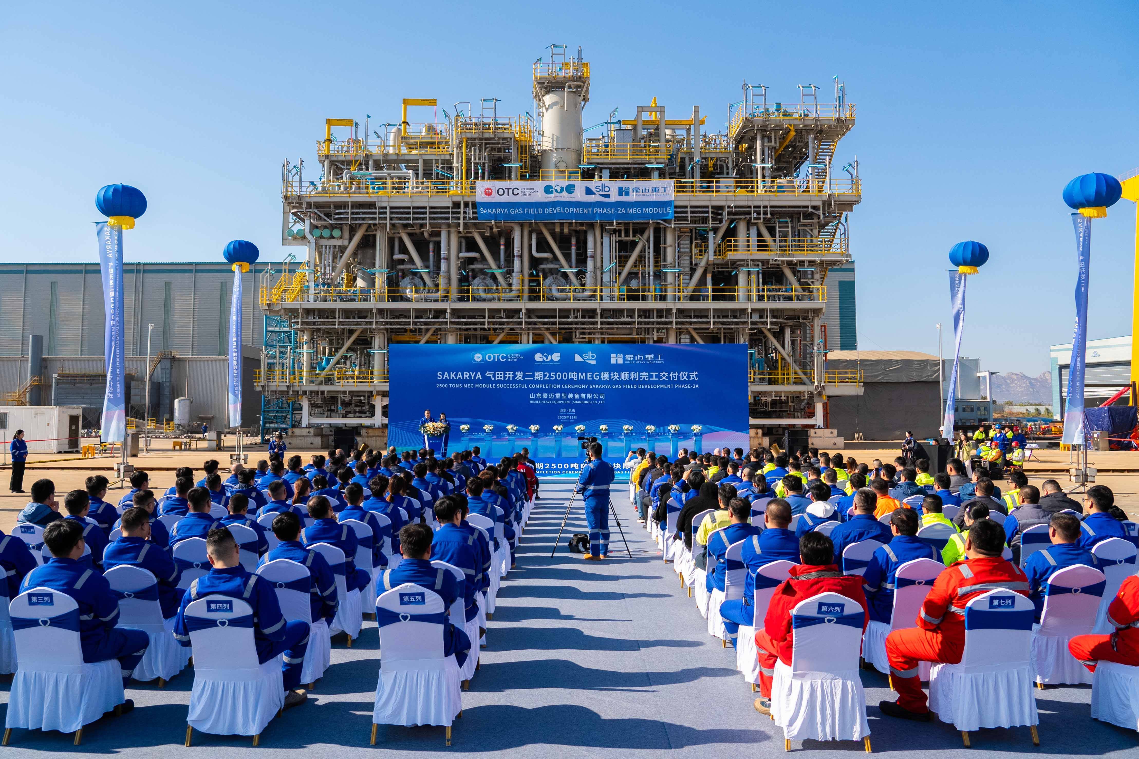 11月14日,豪迈重工2500吨“海上移动油气工厂”乙二醇处理模块完工交付。豪迈公司有关负责人及客户代表、分包商代表、豪迈项目组代表等参加仪式,共同见证交付时刻。